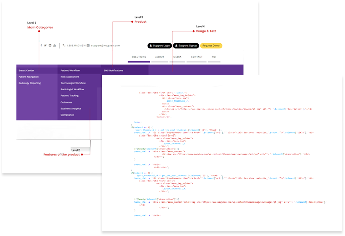 The level of coding is most complex and required our very best and experienced to work on it.Using custom Jquery and custom php we created the 4 - Level Horizontal Mega Menu. All this was done within the Wordpress Architecture without any modification to the Wordpress core files thus keeping the site security impregnable